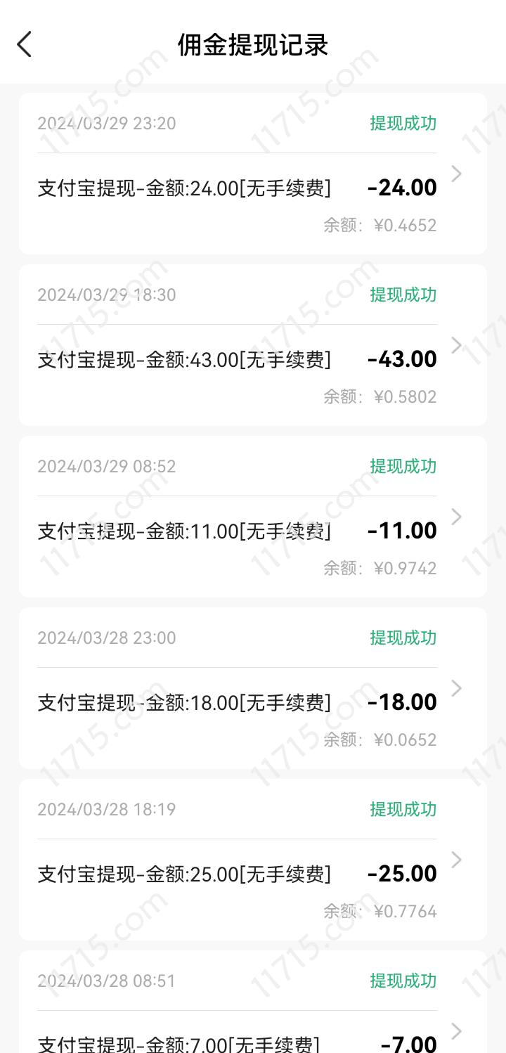 下图是我近期的提现记录,可以看出,每天也能赚个几十块钱,也是1元起提现,无限次数的。